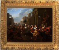 O episódio, que frequentemente encontramos retratado em telas, é uma obra autografada do pintor Giovanni Battista Merano, nascido em Gênova em 1632, aluno de G. Andrea de Ferrari primeiro e depois de Valerio Castello (que nunca abandonou como seu modelo inspirador, particularmente como mestre de afrescos).