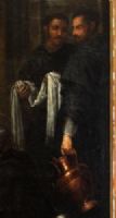 Ein Lichtstrahl durchbricht den Himmel und beleuchtet die beiden Hauptfiguren, die vor einem dunklen, in Brauntönen gehaltenen Hintergrund auftauchen und sich einen verständnisvollen Blick zuwerfen. Der Autor des Werks ist Giovanni Battista Casoni (Lerici, 1610 - Genua, 1686), der zunächst Schüler in der blühenden Werkstatt von Domenico Fiasella, genannt der Sarzana, war und später Mitarbeiter des Meisters sowie Schwager wurde.