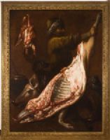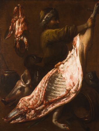 Nuestro lienzo entra en un imponente corpus de obras que representaban escenas de vida cotidiana donde el autor "fotografiaba" el interior de cocinas o talleres donde animales de varia naturaleza, pollos, pavos, cerdos, caza, liebres, etc., más o menos despellejados o descuartizados, estaban destinados a la preparación de suculentos almuerzos.