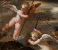Die Szene ist lebhaft belebt. Proserpina, ein schönes und unbeschwertes Mädchen, Tochter der Ceres, die am Ufer des Pergusa-Sees in Sizilien Blumen pflückt, wird von Pluto bewundert. Der Gott der Unterwelt verliebt sich in sie und entführt sie auf einem Wagen. Zwei geflügelte Putten treiben die schwarzen Pferde mit Dreizack und Peitsche an. Im Hintergrund fliehen verängstigte Dienerinnen. Das Thema gefiel den Auftraggebern des Magnasco sehr. Eine zweite Version, die in unserem Webkatalog veröffentlicht wurde, ist ein Beweis dafür. Unsere Leinwand ähnelt stilistisch dem Altarbild "Das Wunder des heiligen Hugo", das in Genua im Oratorium der Unbefleckten Empfängnis aufbewahrt wird, signiert und datiert 1663; dies erlaubt uns, das Gemälde chronologisch zwischen 1660/1665, der reifen Periode des Magnasco, einzuordnen.Abmessungen: Leinwand 140 x 205,50 cm