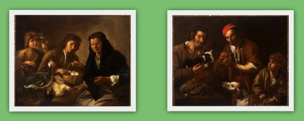 Les références stylistiques évidentes et les comparaisons avec la meilleure production de Bernhard Keilhau nous permettent d'attribuer ces magnifiques toiles à la main du maître danois. Peintre de la réalité, les œuvres de la période romaine représentent des personnages populaires, des compositions à plusieurs figures et d'âges différents, des enfants, des jeunes et des personnes âgées "… avec une caractéristique concrète, nous notons que presque tous les tableaux présentent des dimensions déterminées : environ 97 x 133 cm pour les compositions à plusieurs figures." [Bernardo Keilhau dit Monsù Bernardo, M. Heimburger, Rome 1988, p. 117]. Les deux peintures, probablement un cycle figuratif, représentent une scène de la vie quotidienne avec une signification allégorique à "double entendre", une caractéristique typique des peintres hollandais.