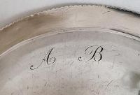 Grande bassine en argent repoussé et ciselé. De forme ovale avec une surface entièrement lisse, elle est bordée d'une moulure parallèle et d'une bande cordée. Elle porte la marque de La Torretta avec la date (1)720. Très élégante dans sa simplicité. Dimensions : 35 x 28 cm - hauteur 5,5 cm - poids 1.058 g