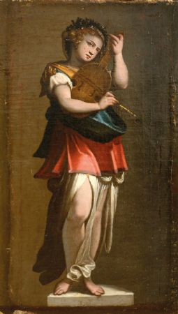Une jeune fille se tient debout sur un piédestal, tenant entre ses mains un luth, instrument de musique, qu’elle est en train de jouer ; le sujet de cette petite toile est la figure féminine de la « Musique », représentation allégorique des Arts Libéraux. Durant le Moyen Âge, les artes liberales de l’homme libre étaient les enseignements littéraires du trivium (grammaire, rhétorique et dialectique) et scientifiques du quadrivium (arithmétique, géométrie, musique et astronomie).