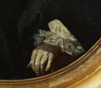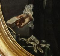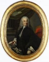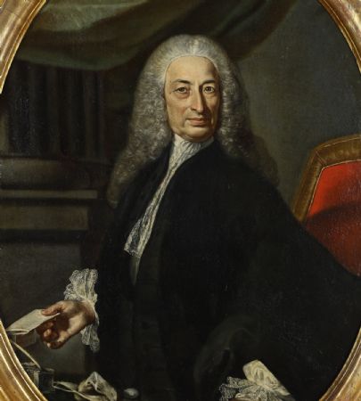 Une loggia enrichie d'un drapé vert sert de toile de fond au cabinet de travail du personnage représenté. L'obscurité de la scène est ponctuée par le rouge du fauteuil et le blanc de la perruque et de la chemise brodée portés par l'homme. La figure en buste, représentée aux trois quarts, tient un billet dans sa main droite ; sur la petite table placée devant lui, sont posés le gant et l'encrier avec sa plume. L'autre main, appuyée sur l'accoudoir du fauteuil, porte un gant de satin blanc changeant. La toge noire qu'il porte suggère que ce personnage fortuné pourrait avoir été un sénateur de la République de Gênes, mais en l'absence d'informations sur son identité exacte, on ne peut affirmer avec certitude sa véritable profession. La qualité picturale est, elle, indéniable !